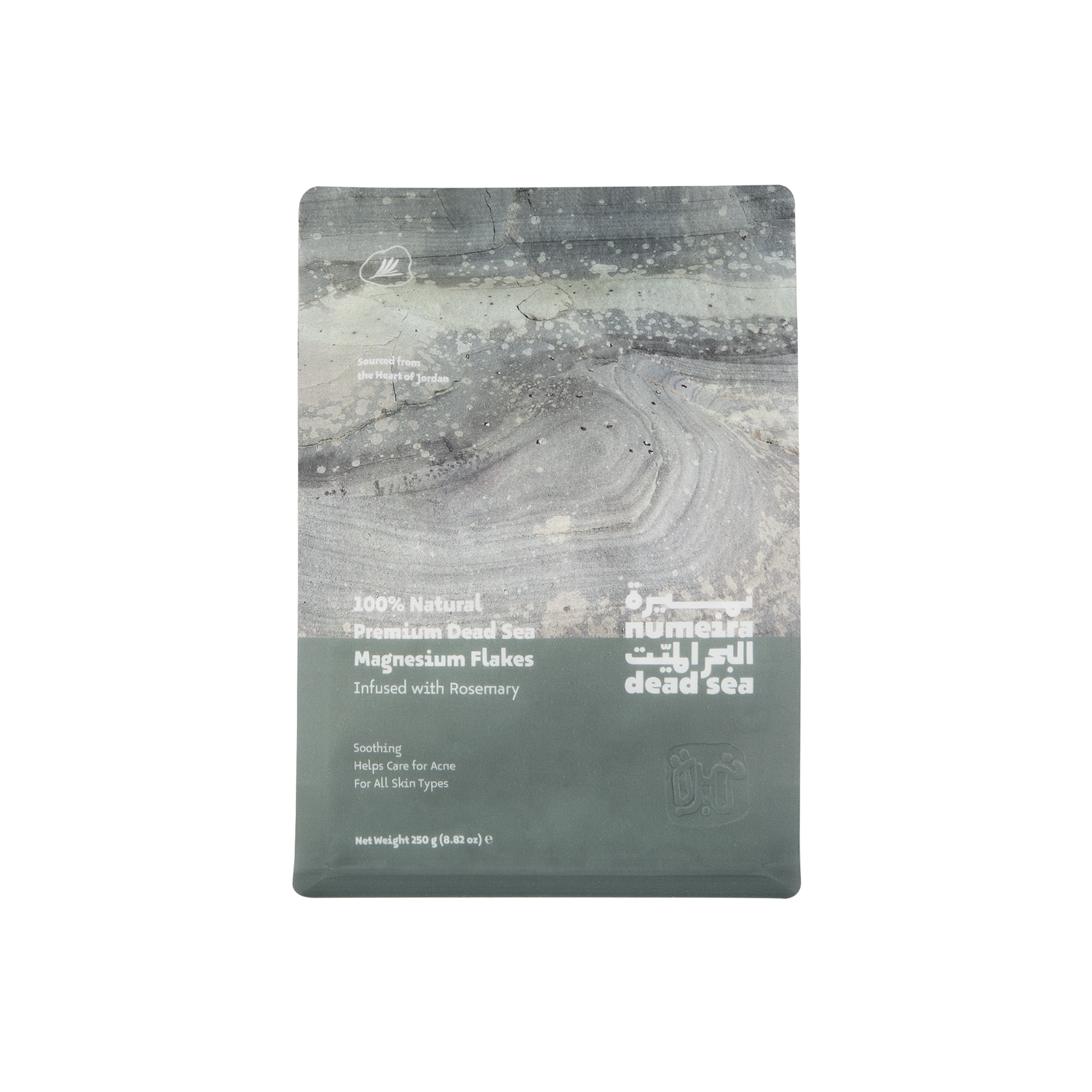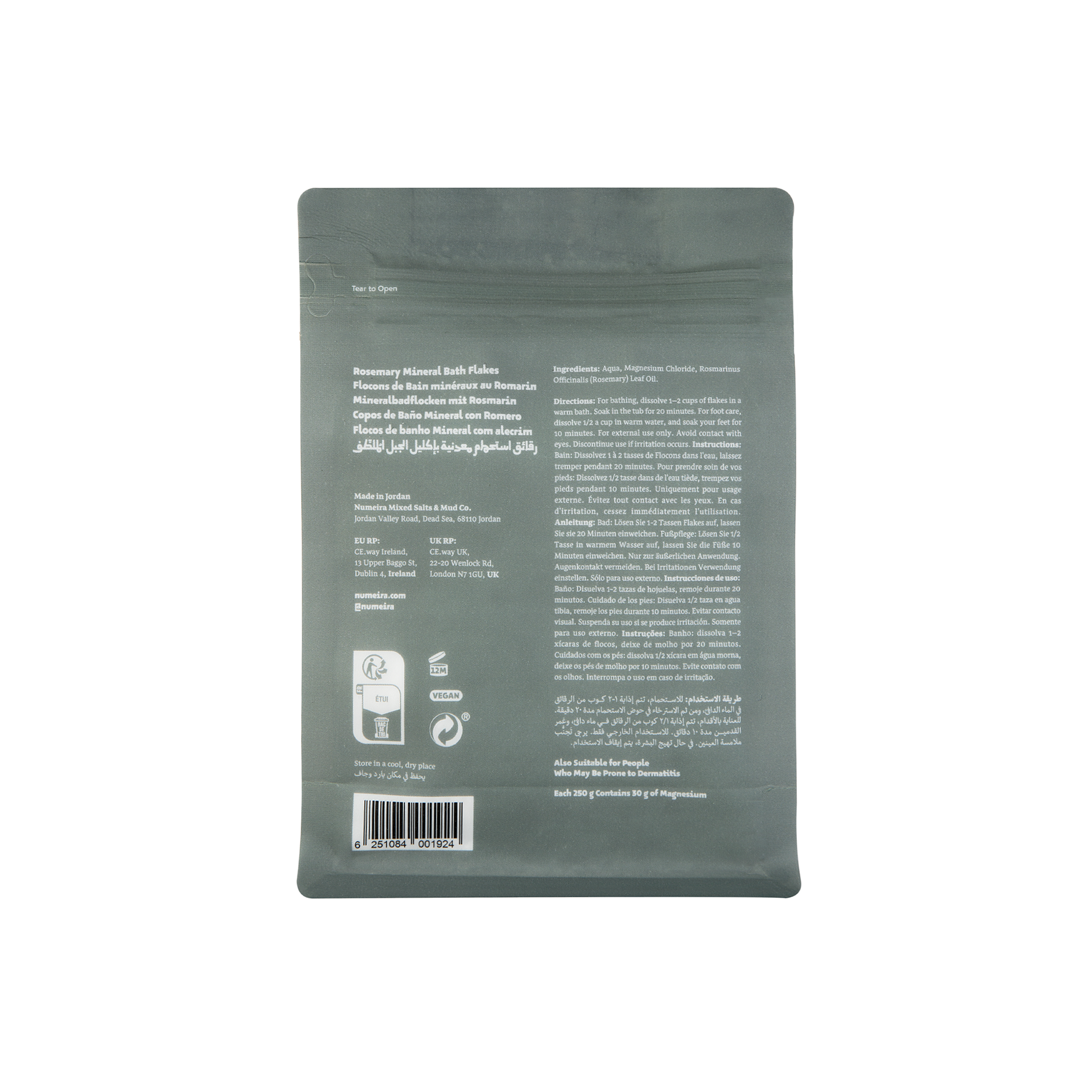 Diese sonnengetrockneten und magnesiumhaltigen Badeflocken werden aus der Sole des Toten Meeres gewonnen. Dieses natürliche Salz ist mit Rosmarin angereichert, lindert Hautreizungen und spendet Feuchtigkeit. Lösen Sie es in warmem Wasser auf und lassen Sie Ihren Körper die beruhigenden Mineralien aufnehmen.